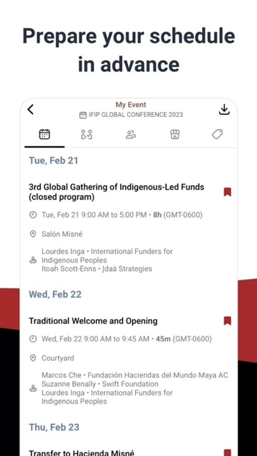 • Notifications ensure you never miss the sessions you have scheduled. And you stay alerted with real-time updates and announcements from the organizers.