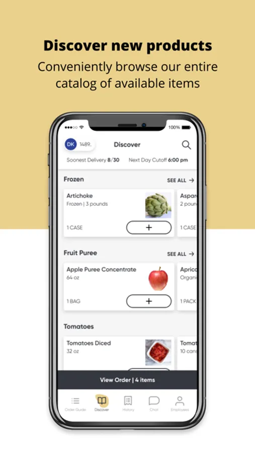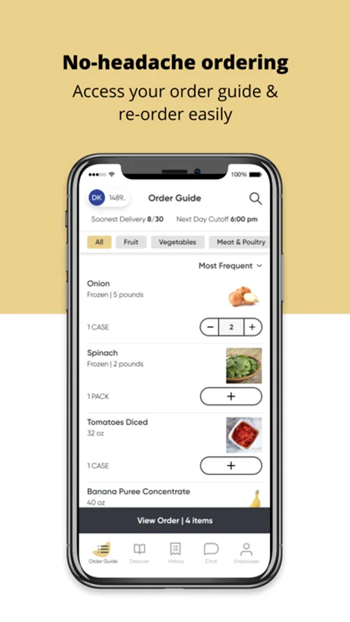 Our mobile app lets you search our complete product catalog, manage and update your ordering guide, and buy what you need at the moment you need it. It’s part of our commitment to giving you an ordering experience you’ll love.