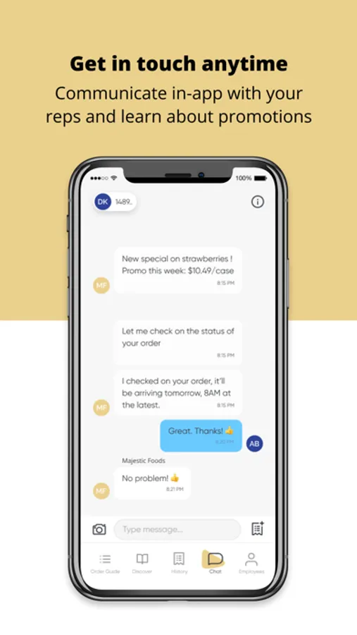 - Get in touch anytime: communicate directly with your Majestic Foods rep in the app