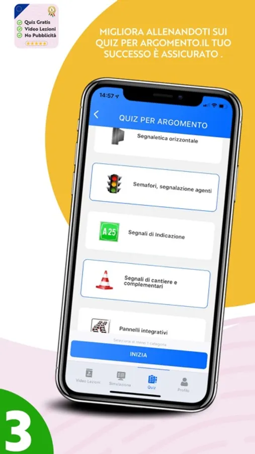 NB: tutti i quiz e le lezioni hanno gli ultimi aggiornamenti previsti dal codice della strada per l’ anno 2020