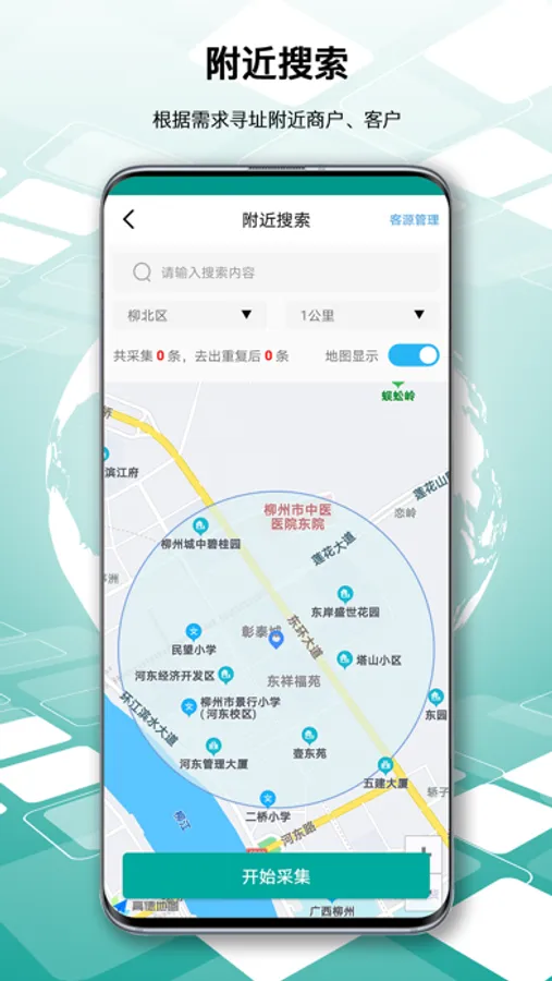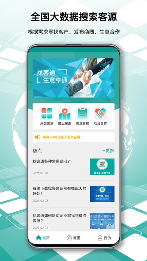 找客通是一款为各行各业获得精准客源的工具软件,方便使用,利己利他,带动实体行业经济火起来,由柳州欧喔斯泰科技开发成立,帮助跟多的商家解决当前生意难做的问题而孕育而生的一款软件。