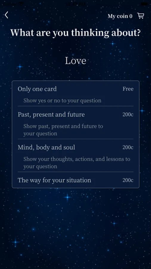 It’s paid tarot. But don’t worry. You can get free coins at the first time!