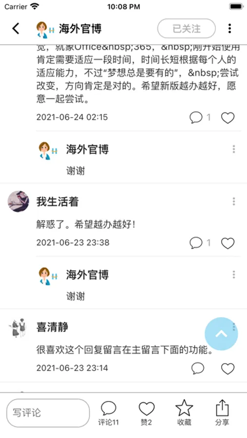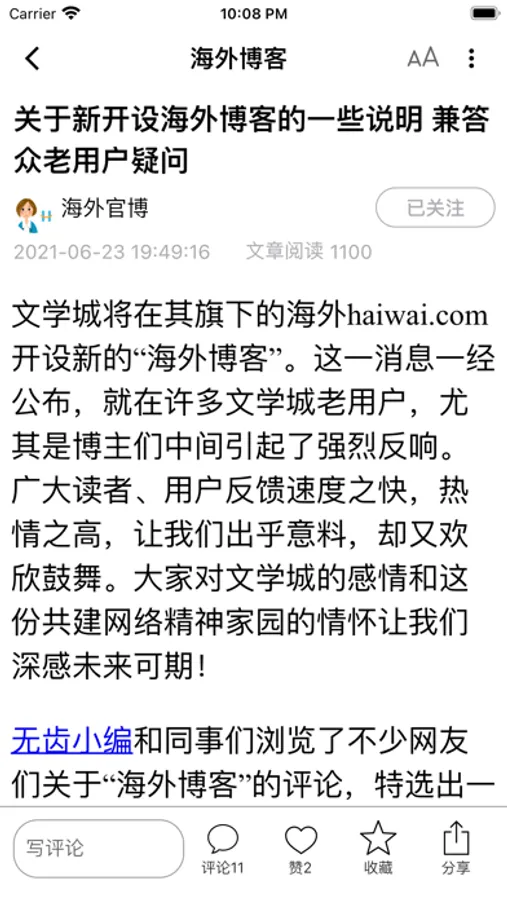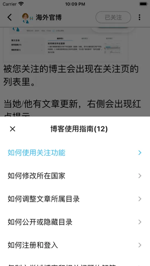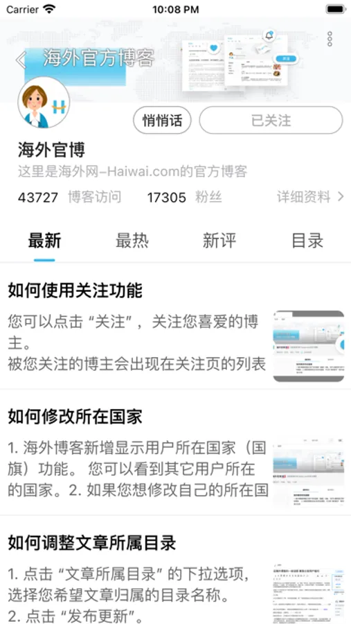 - 关注功能 — 用户将能够关注自己喜爱的博主;这一带有社交属性的功能让您能更轻松地的阅读到自己喜爱的博主最近的更新内容。我们鼓励用户多关注其他博主。