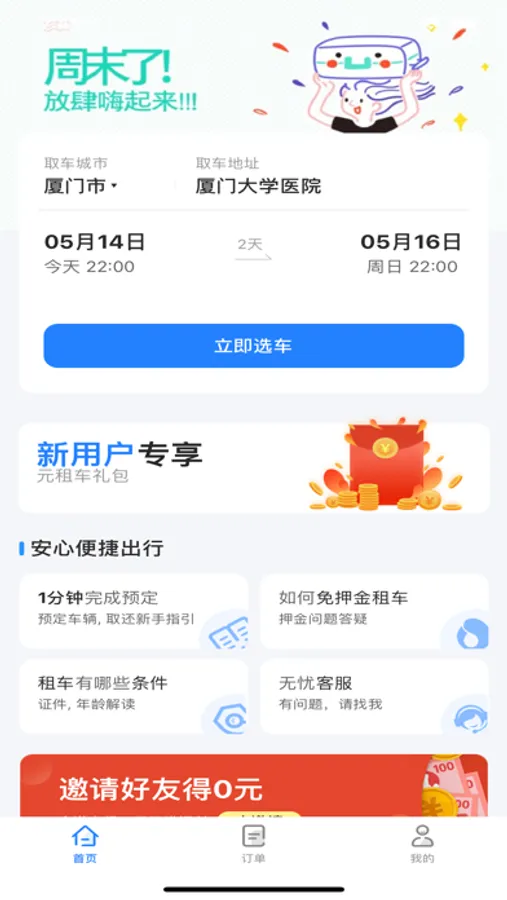 【便捷租车】:APP一键下单,快速取还车辆,简单租车简单生活。