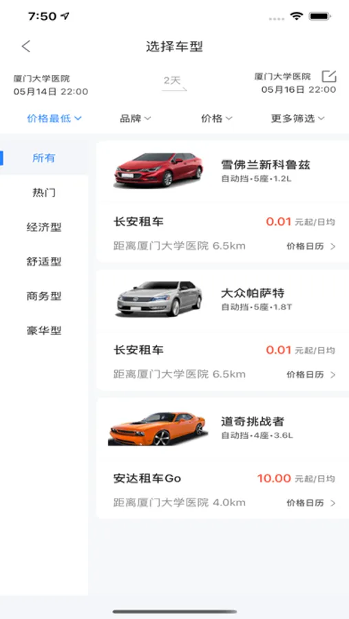 【车型丰富】:经济型车、舒适型车、商务型、SUV、豪车、新能源车应有尽有,满足您不同车型选择。