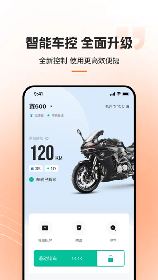 人车互联--提供人车定位、车辆信息查看和车辆控制(需结合车载硬件)、历史骑行轨迹、电子围栏等。