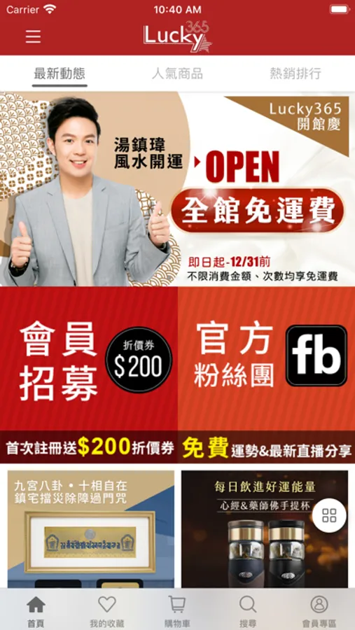 『Lucky365』是湯鎮瑋老師官方開運服務APP,提供專業的開運商品、命理服務、風水知識、運勢分析,以及湯老師最新的活動與直播訊息;希望可以替每位下載的朋友打造全年365天,天天開運的幸福生活!