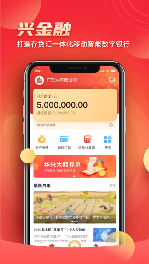 兴金融是广东华兴银行围绕个人经营贷、企业法人贷和个人消费贷等产品建立开放式金融生态圈合作体系,通过大数据分析,结合最新互联网技术,构建以客户为中心的线上线下一体化自金融服务平台;