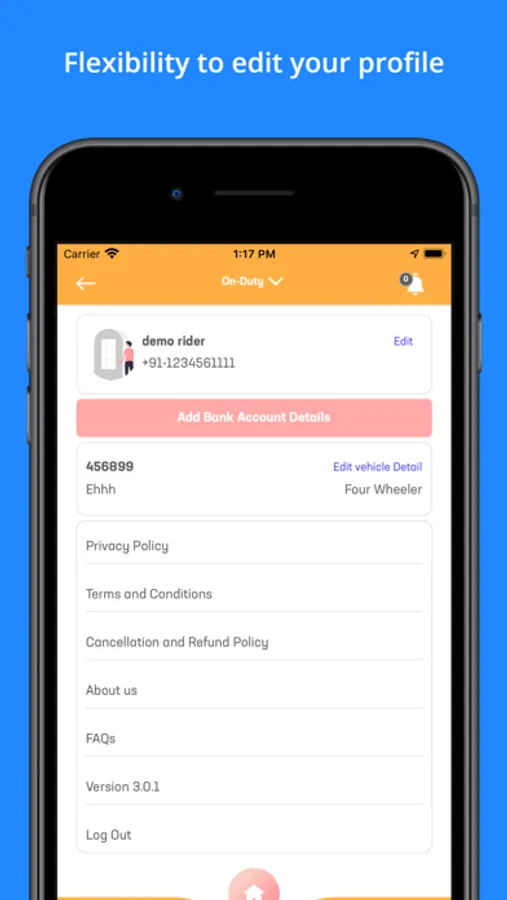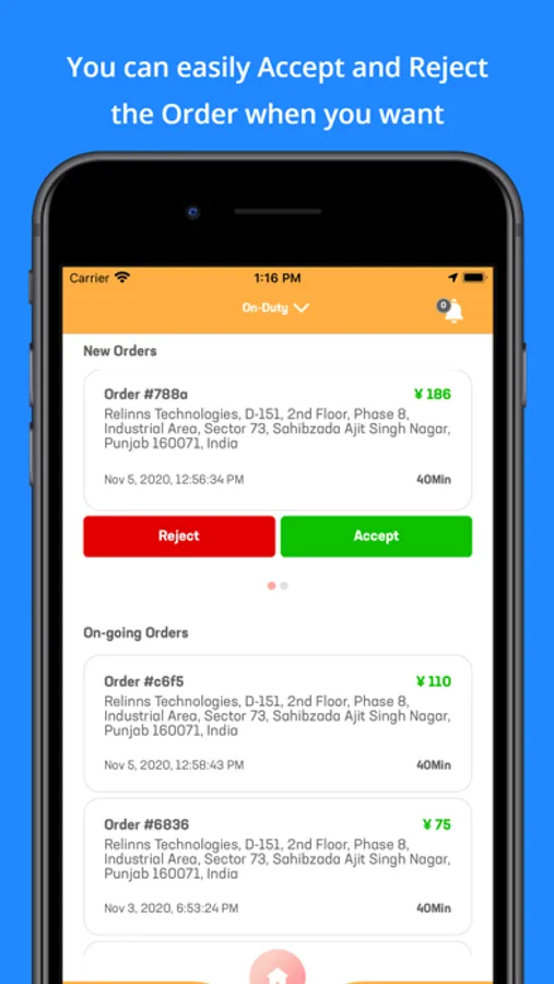 AppsRhino Rider is an on-demand E-comm services delivery app where Delivery Persons will be on boarded by the owner of the platform after manual inquiry. These Delivery Persons can get their service requests on just the tap of a mobile app. Our Delivery Persons will pick-up and deliver the services at the customer's doorstep as per your request and schedule