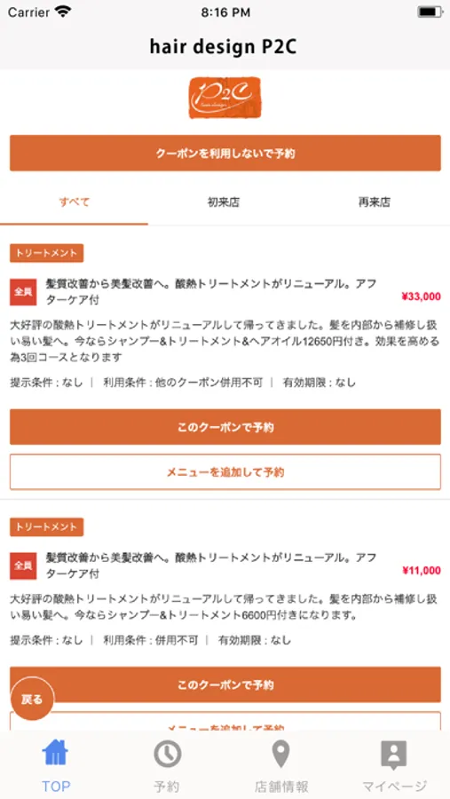 お得なクーポンが配信されます。ネット予約時にクーポン利用での予約も可能なので来店時もスムーズに施術頂けます。