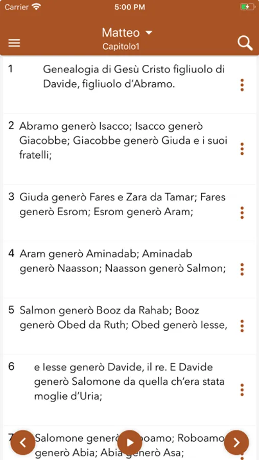 Interfaccia intuitiva e accesso rapido a libri, capitoli e versi.