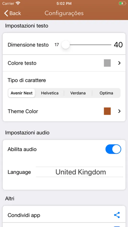 Include le impostazioni della dimensione dei caratteri, oltre all'audio per tutti i capitoli della Bibbia (