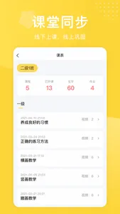 同步课堂学习,每天15分钟学习一个字,查看课程进度和学习日历,上传复习作业,真人老师专业细致点评,让学习连贯起来。