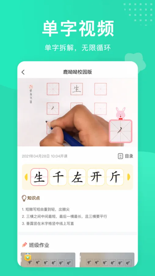“鹿呦呦·校园版”是鹿呦呦写字平台课堂同步学习工具;