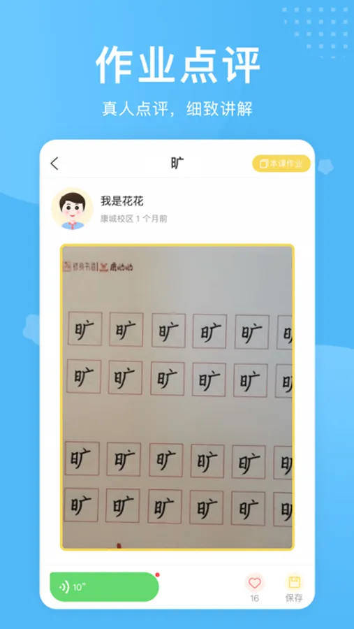 记录孩子写字情况,作业永久存档,家长可随时查看,进步看得见