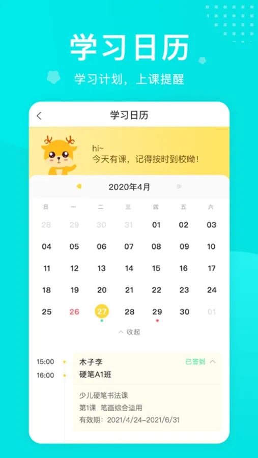 鹿呦呦写字平台为百度旗下教育产品,以“以书载道,书道融汇育人”为使命,为广大线下培训机构提供一站式写字教育服务;