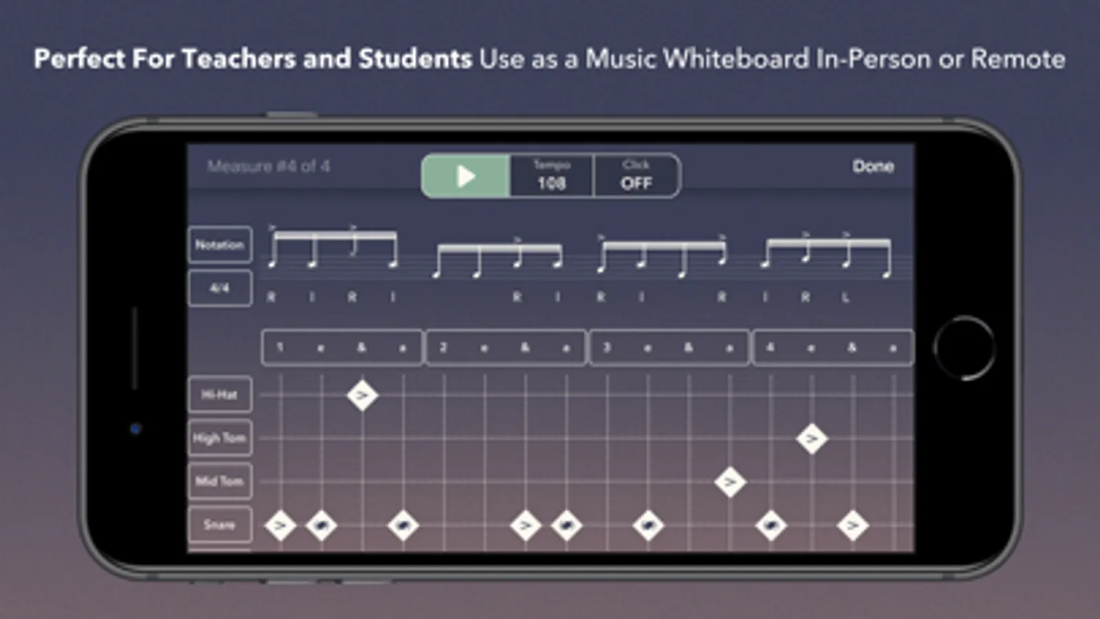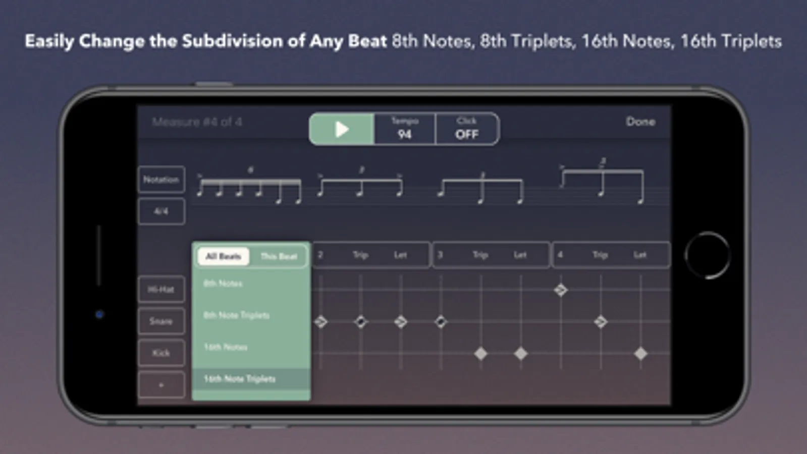 - Teach yourself how to program and read rhythms: Watch as you tap and swipe across the grid as Beat Note magically converts your beats into beautifully rendered drum music notation.