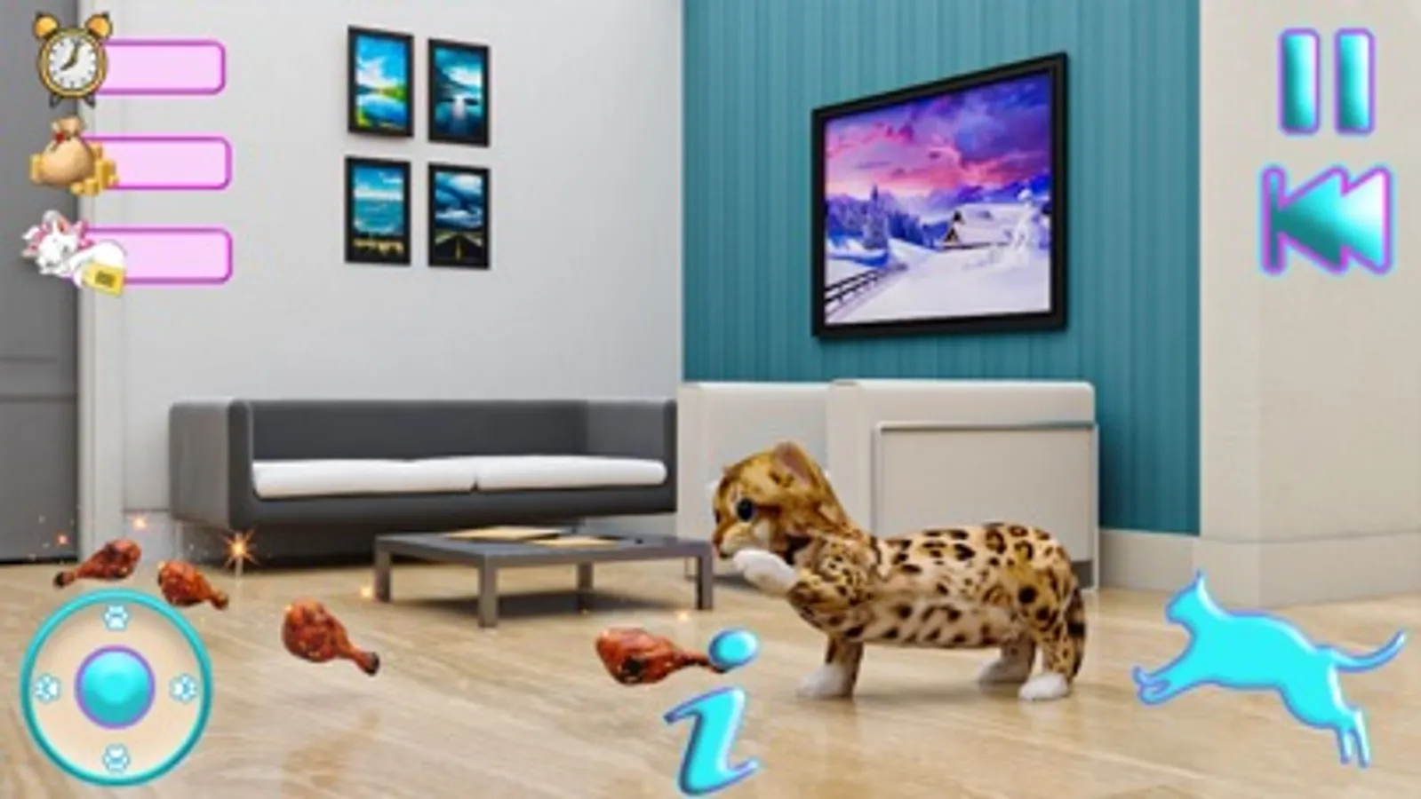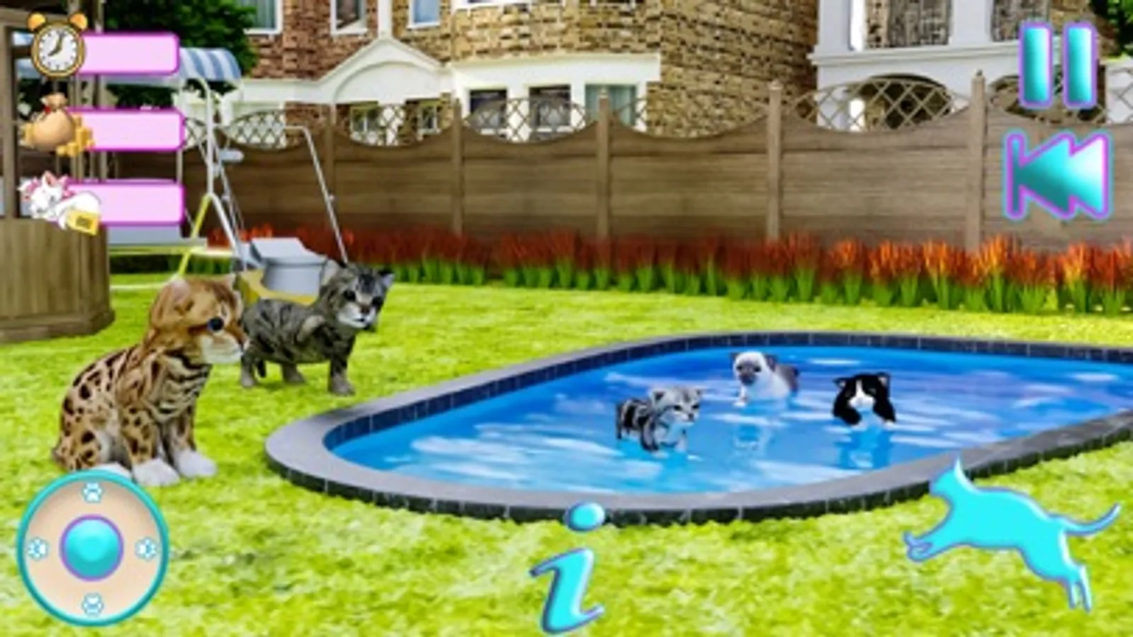 Our adventure 3D game allows you to select a home grown animal of a desired breed, to play with friends and their cute pets online in real time , to be best friend with them, to create real clans and even to preserve your family. The higher level is your little kitten and its family, the more breeds will be opened for you.The kitten will not sit in one place, he will be constantly in motion, like a real one. This little kitten will run after a toy, which you throw.