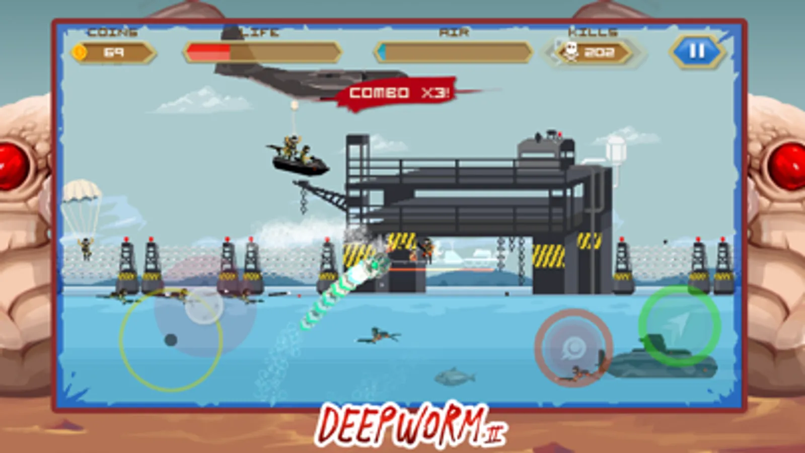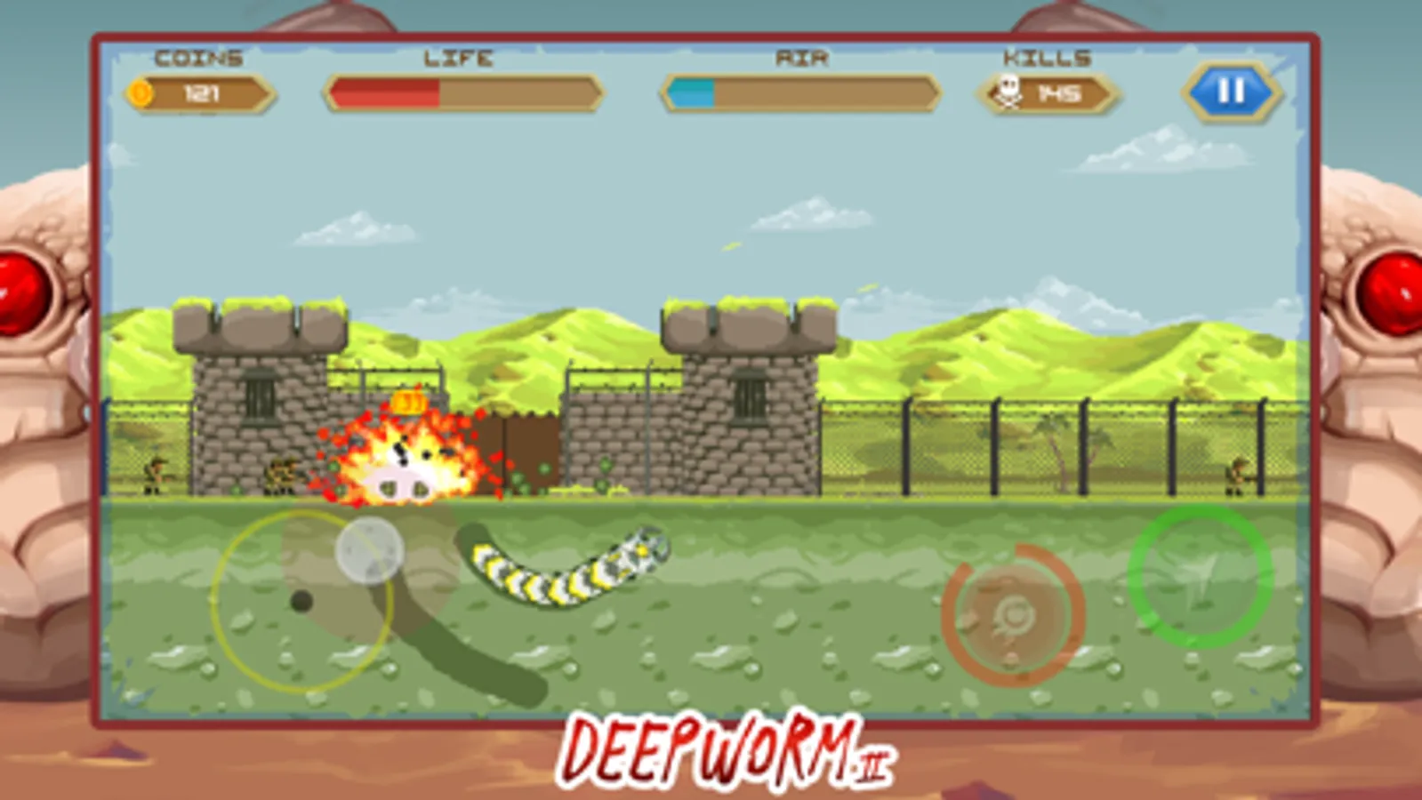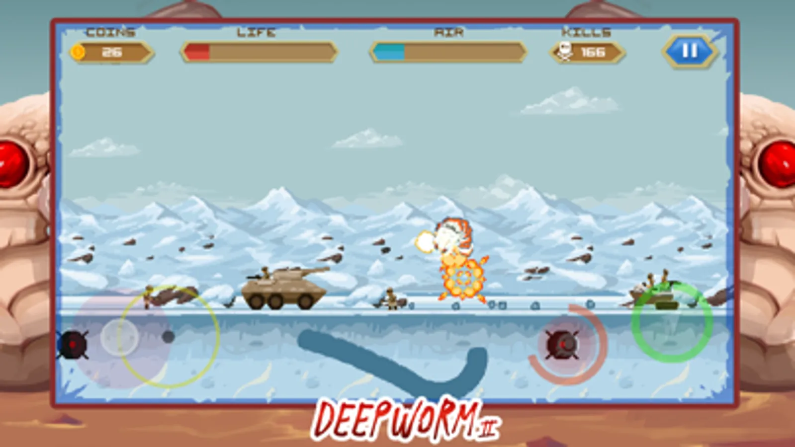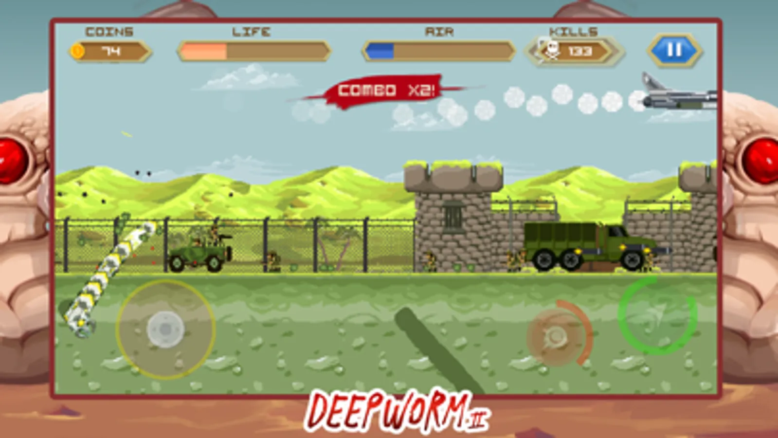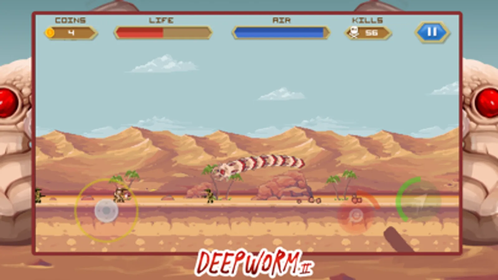 Bring them all to death with your worm. This army just made their last mistake, you must prevent them from occupying the desert where you live but it will not be easy. Helicopters, grenade launchers, parachutists, airplanes and a whole armed force will fight against you.