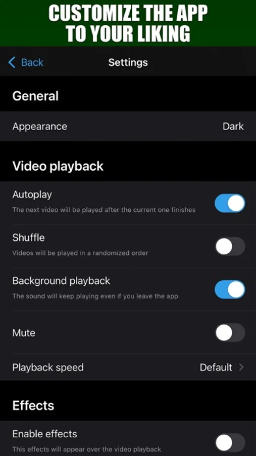 - Possibility of repeating the video indefinitely