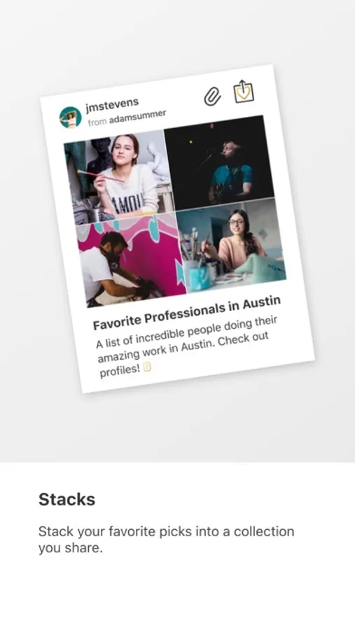 Pickstack users are passionate about finding, posting and sharing the best of everything. Users curate "stacks" of "picks" i.e. experiences or resources they love or are knowledgeable about. They can also "clip" someone else's stack for reference later.