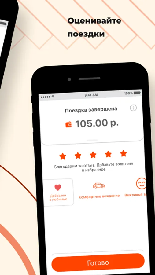 Поставьте оценку водителю, напишите отзыв или выберите реакцию из готовых шаблонов. Посмотрите детализацию платежей после поездки.