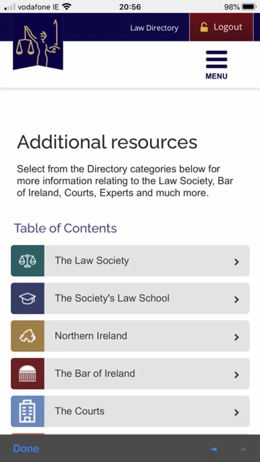 Law Society of Ireland members can also log in to securely access useful Law Directory resources to support your legal practice. These include District and Circuit Courts information, expert witnesses, notaries public, members of the Law Library, conversion tables and much more.