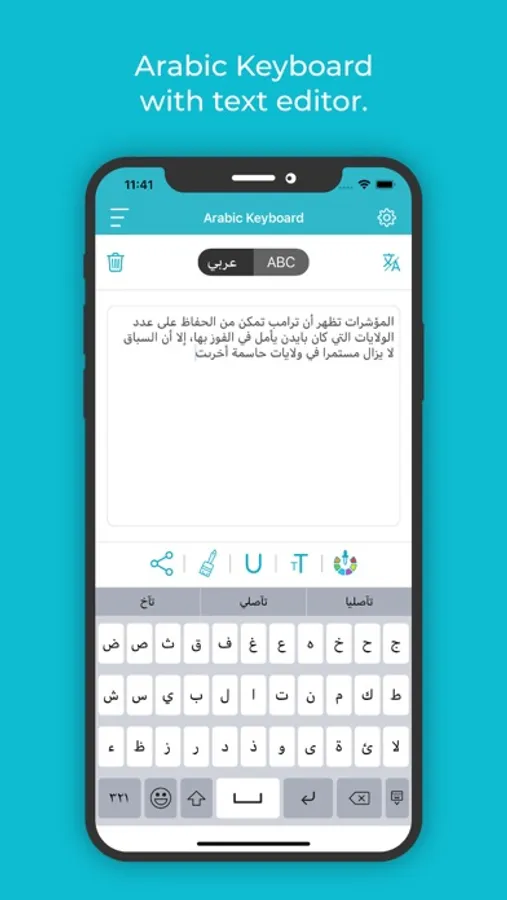 • Changing the font, the color, underlining features inbuilt in this Arabic keyboard iOS.