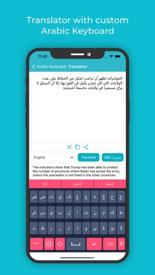 • Once you’re done with your writing in Arabic, you can use the translator feature in the best Arabic Keyboard And Translator for iOS to convert the text into any other language as well.