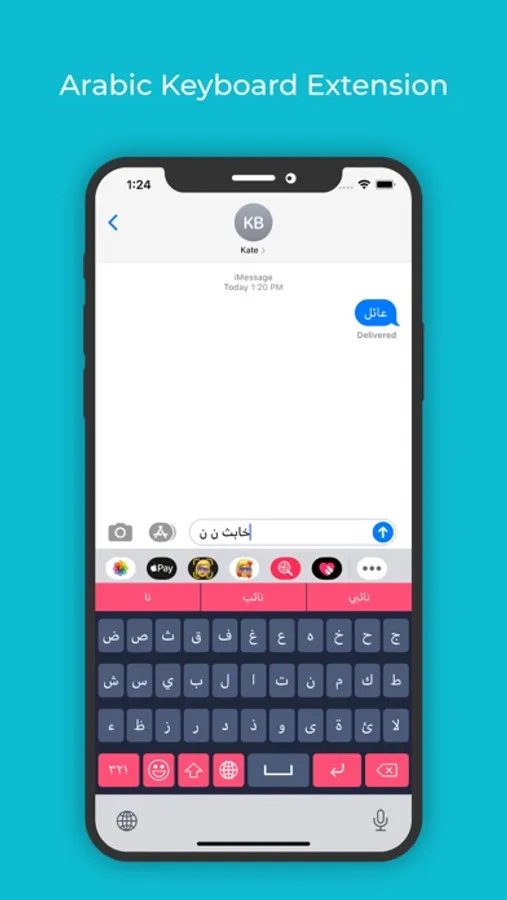 • Easily write messages in Arabic language with the Arabic keyboard for iOS.