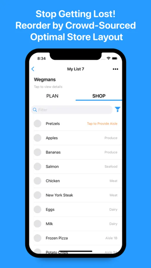 Reorganize your grocery list based on the store layout. Check off items as you go.