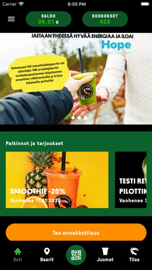 Make your visit at the Jungle Juice Bar even smoother by downloading the new mobile app! By downloading the app, you can join our loyalty program. You will earn coconuts for every purchase and redeem free gifts with the collected coconuts. You can also pre-order and pay smoothies with the app which means that the products you ordered will be waiting you in our bar! Quick and effortlessly. In addition, you will find the contact information for the bars and the entire product range with the nutrition information etc.