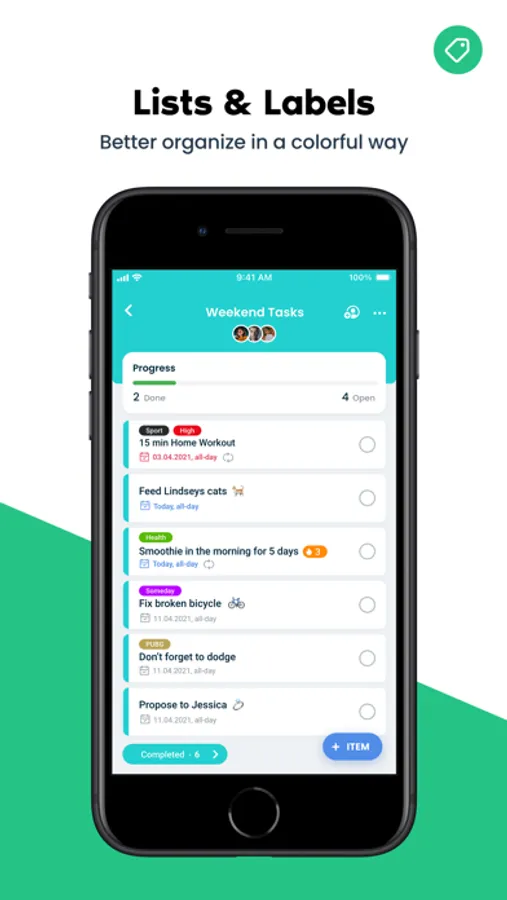 - Organize your tasks in personal lists and give them the colors to find them quicker