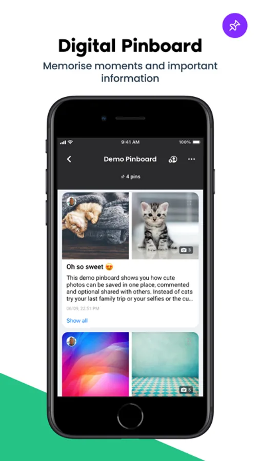 - Save notes and moments in your new digital pinboard and share them with your partner, family or friends
