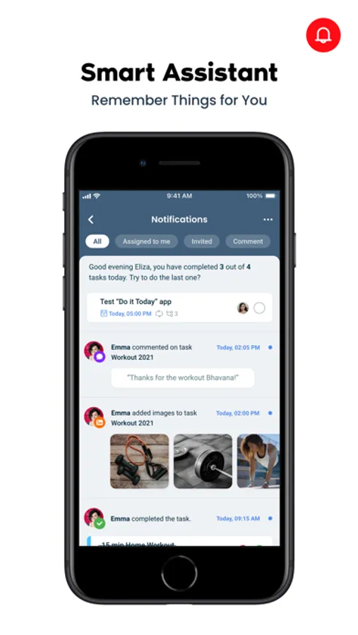 - Collaborate on tasks with attachments like photos or files, comment on progress or assign a task at a glance to someone else