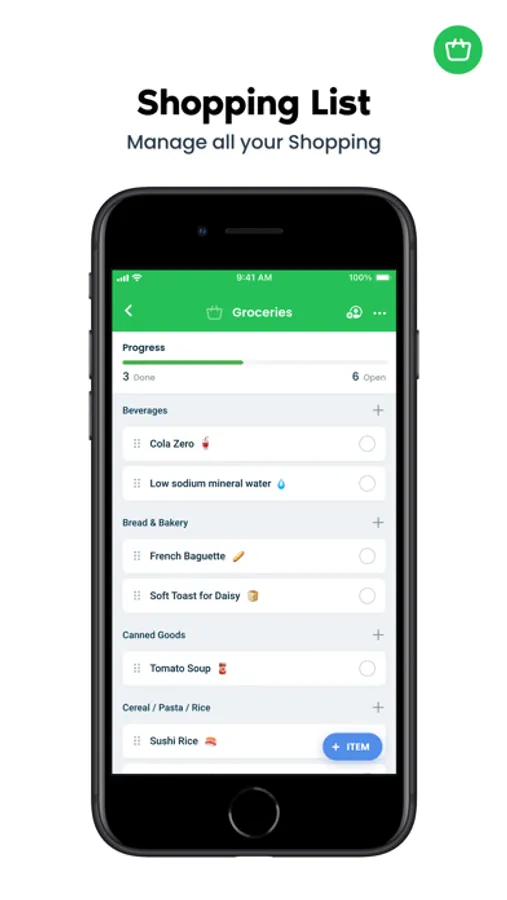 - Organize all your shopping items in convenient shopping lists with pre-defined categories