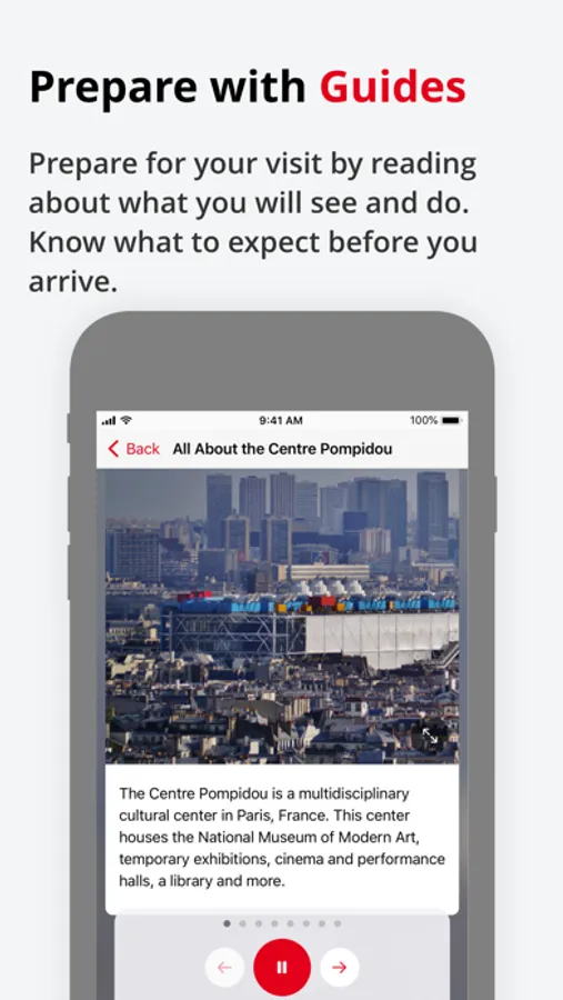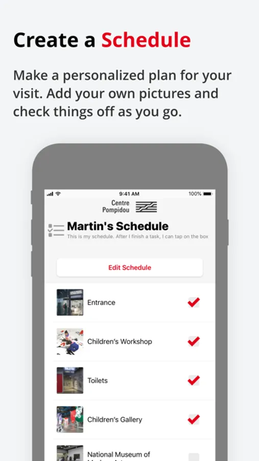 The Centre Pompidou is committed to promoting access to its collections and programming for all individuals. The Centre Pompidou Accessibility app was developed to help people with cognitive and developmental disabilities, including autism, prepare for a day at the museum.