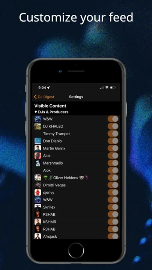 - DJs like David Guetta, Martin Garrix, DJ Envy, DJ Khaled, W&W, Oliver Heldens, Dimitri Vegas, Armin van Buuren, Alok, Afrojack, KSHMR, Steve Aoki, Marshmello, Don Diablo and more.