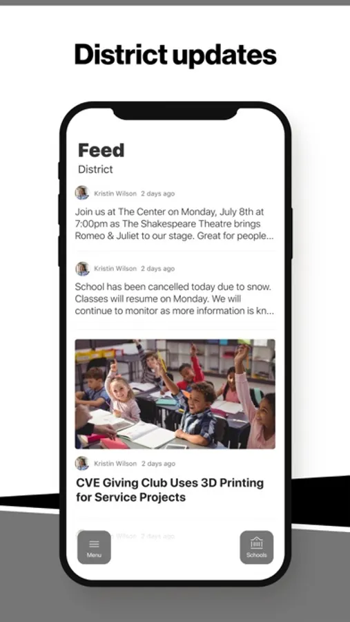 In the Live Feed is where you'll find updates from the administration about what's going on in the district right now. Whether that's celebrating a student's success, or reminding you about an upcoming deadline.