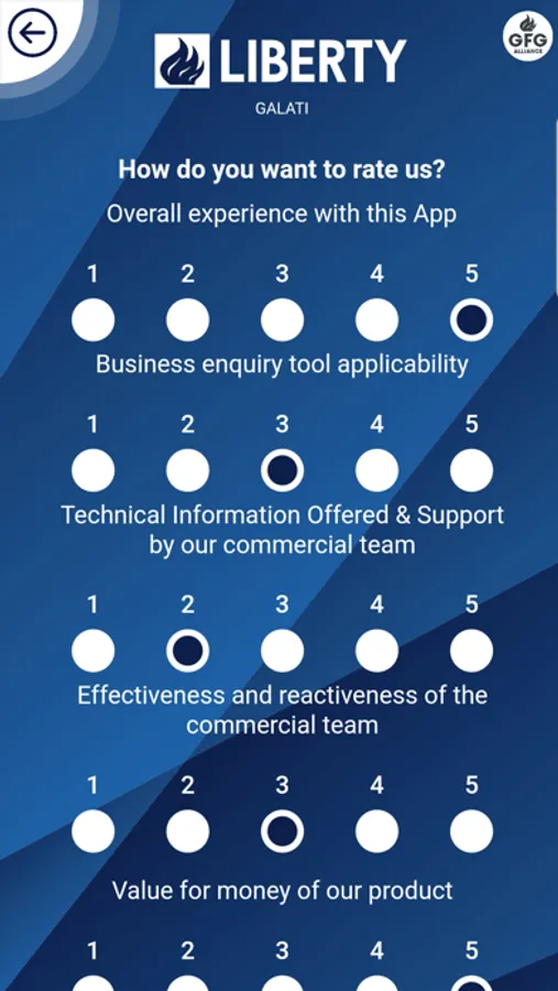 Feedback section will help the user to provide their insight on the quality of the services they are receiving from Liberty Galati.
