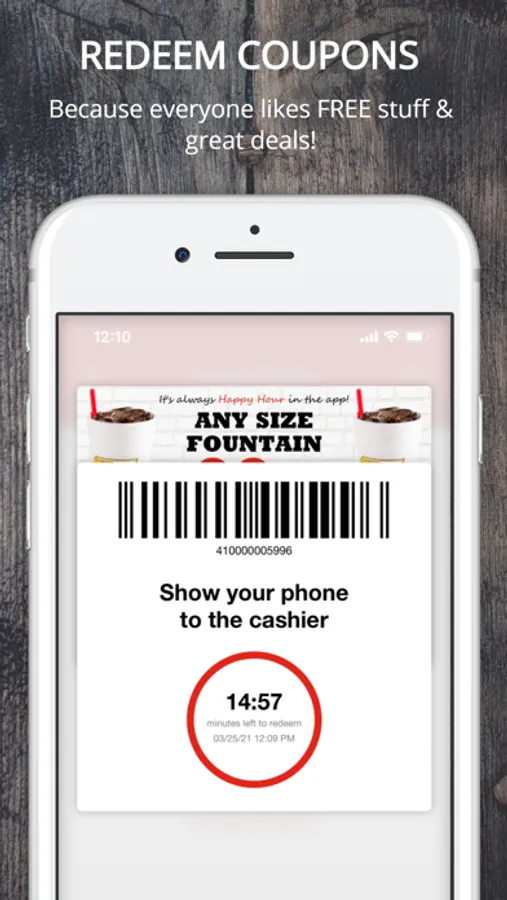 Simply tap the orange redeem button and show your phone at purchase to redeem your coupons.