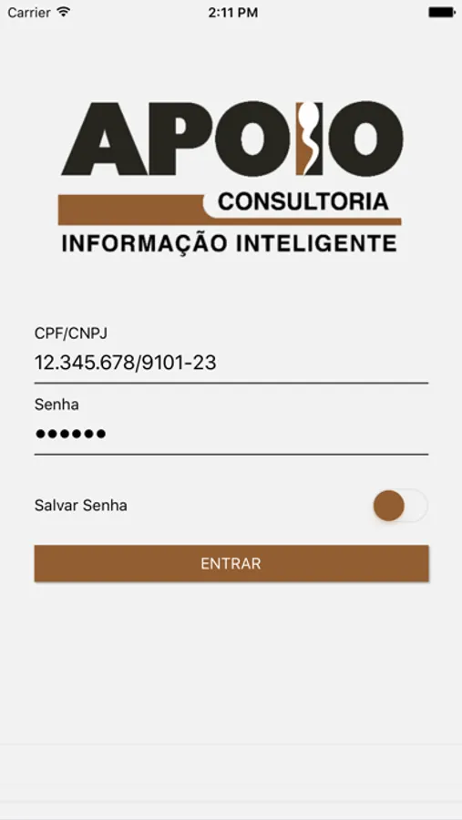 App para visualização dos dados e gráficos exclusivo para clientes da Apoio Consultoria