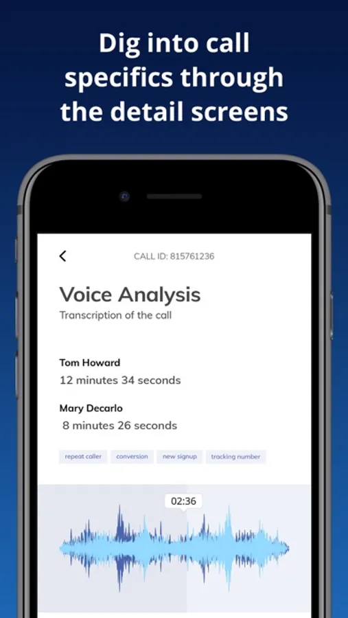 Each phone call coming in through your marketing channels immediately appears in the app. Access caller data, including the source and keyword of each call, and add notes and tags for each caller. You can also review the recordings of all incoming calls through your tracking numbers.