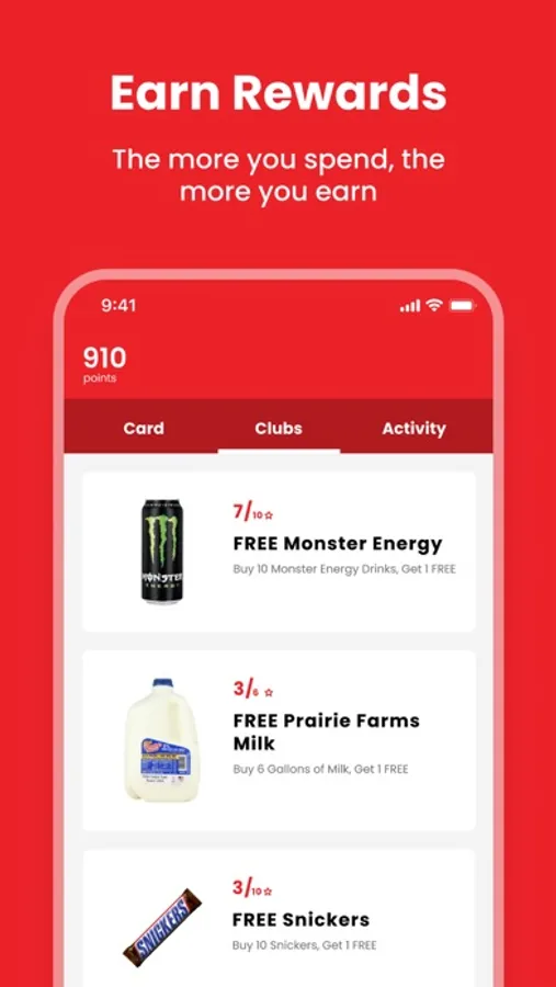 *Note that customers can earn but not redeem OnCue Rewards with Kickback Points through a mobile device at this time. Club programs and product offers can be redeemed through the app rewards page, but only a physical OnCue Rewards with Kickback card can be used to redeem points.