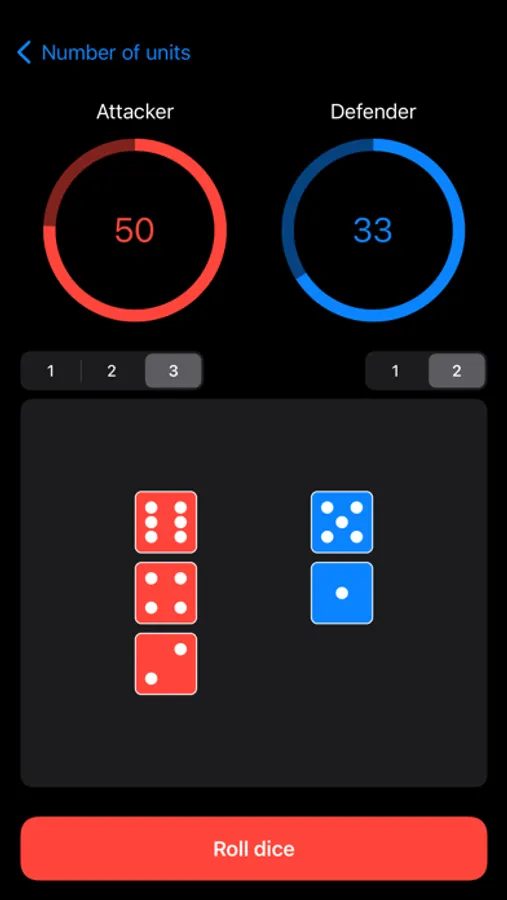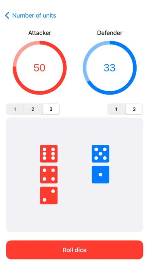 With Risk Roller long-drawn-out battles are a thing of the past. Select the number of units and start rolling your dice!