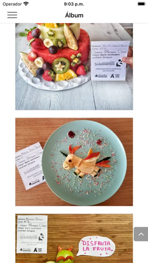 El objetivo es el de difundir entre la comunidad escolar los beneficios de la fruta como parte fundamental de una dieta saludable. Los alumnos, en compañía de su familia o profesores, crean divertidas composiciones fotográficas con piezas de fruta que luego se publican en el álbum de fotos de la App y de la web www.frutadivertida.com