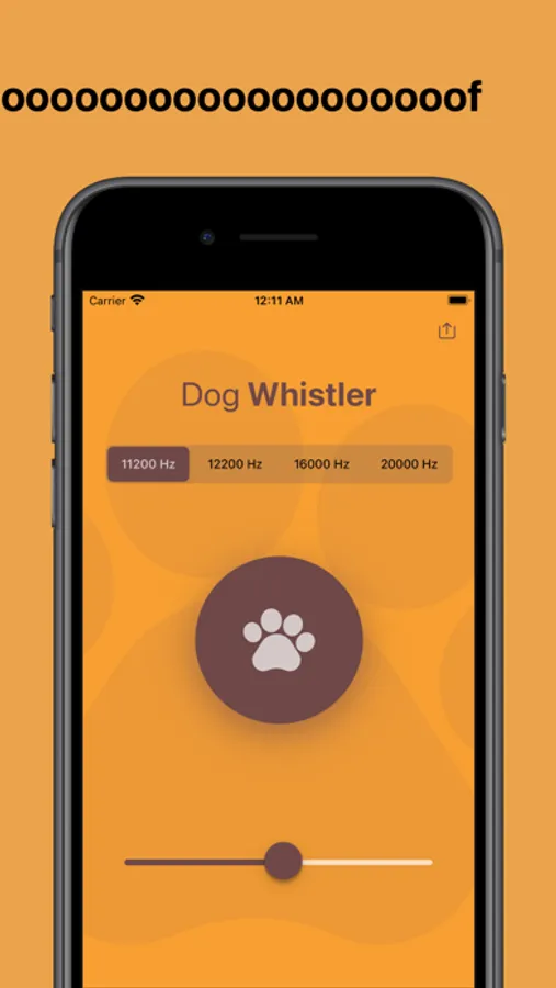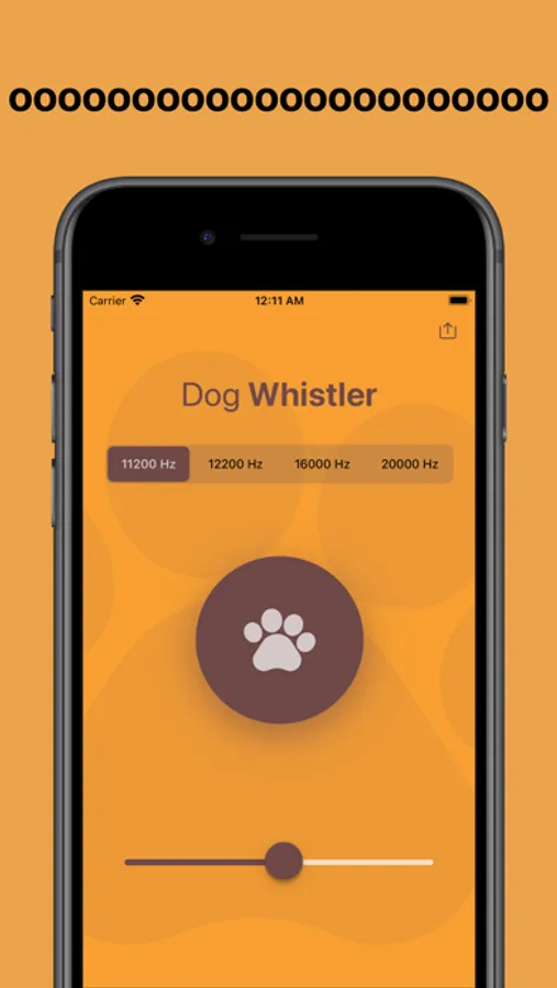 Dog Whistler app can emit high frequency sounds anywhere in the range from 11,200 Hz to 22,000 Hz.