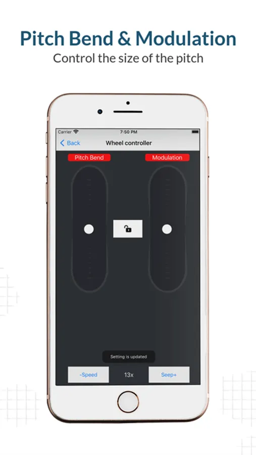 Play like a pro with pitch bend and modulation wheels with high precision. Th eapplication allows you control connected Digital keybaord that support MIDI messages.