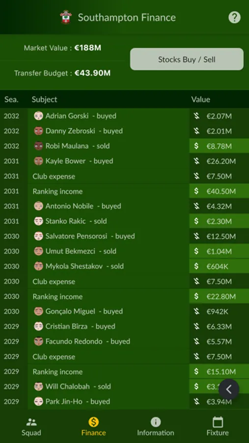 85 Leagues, Club President, Federation President, Match Preview, Investments, Talents, Staffs, Scouting Network, Club Stocks, Sponsorship, Guessing Game, Events, National and International Championships, Cups, Super Cup, World ranking system for Nations, Ticket, Marketing, Medical Center, Advanced Player Statistics, Awards, Top Eleven of Year, Top Scorers and Assists, Negotiation and Talk with Player, Transfer Strategy, Ballon d'Or, Golden Boot, Club's Legends, Best Rich Successful Clubs List