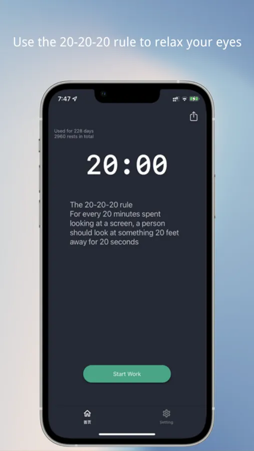 As a programmer, I use my eyes a lot and my eyes are tired. I searched the Internet on how to relax eyes. So I wrote this app to remind myself to relax my eyes according to the 20-20-20 rule.